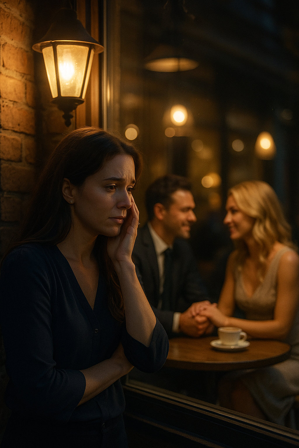Through the café window, she saw them—Daniel’s hand resting over Harper’s, both leaning close, sharing smiles and secrets.