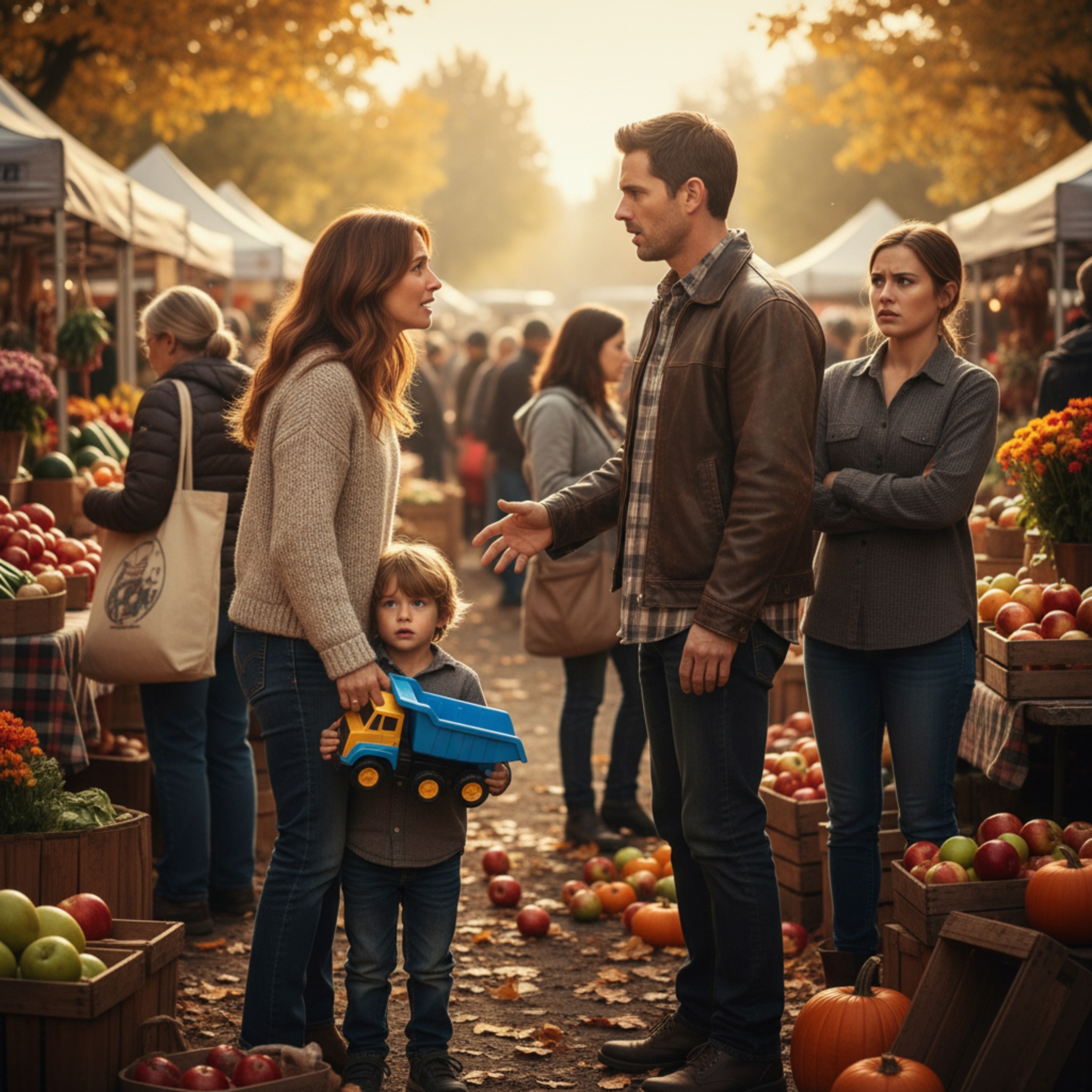 Emily gasped, the sound sharp enough to cut through the market noise. People began to slow, watching. Mark’s hands shook; disbelief contorted his face.